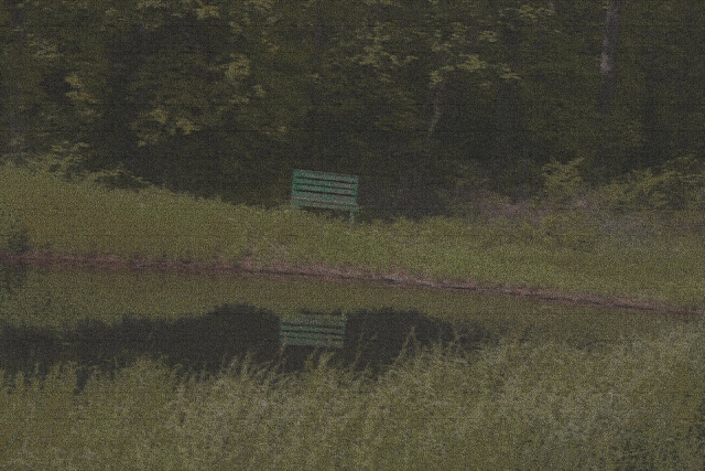 A bench at the end of the trail overlooks a pond, reminding me of Monet's impressionist paintings.